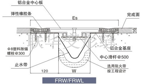 联华双列嵌平型地坪伸缩缝型号有:FRWS、F-WRWS、FRWH、R-WRWH、FRW、F-WRW、FRWL、F-WRWL。
